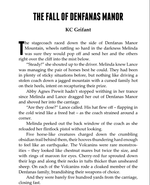 “The Fall of Denfanas Manor” is an original story featuring gunslingers Melinda and Lance as they rescue a kidnapped victim from a relentless supernatural family. You can read an excerpt below.