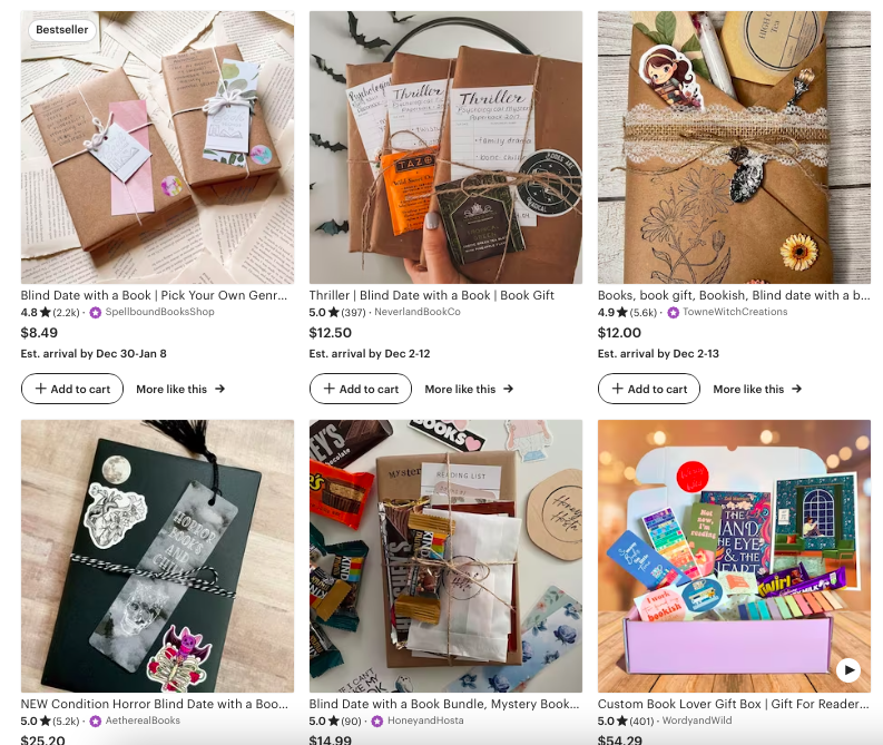 For more ideas, check out the creatively packaged themed “book dates” on Etsy and TikTok. The lovely presentation helps make for a wonderful gift. Or use the images for ideas to create your own book gift packages.