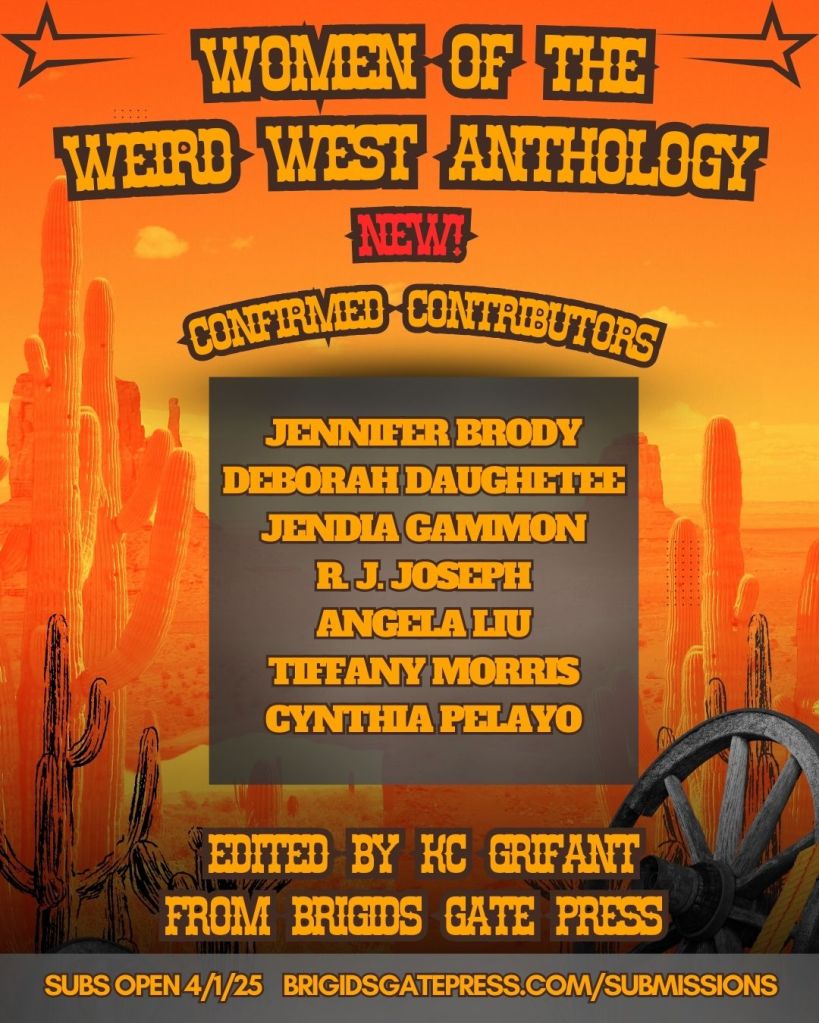 I am so excited to be editing an anthology I’ve had in mind for a long time. Women of the Weird West will be coming out from Brigids Gate Press in 2026, and I can’t think of a better partner for this project!