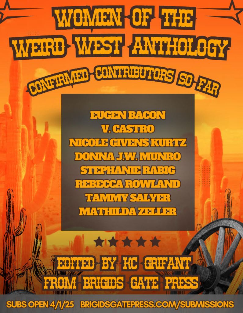 I am so excited to be editing an anthology I’ve had in mind for a long time. Women of the Weird West will be coming out from Brigids Gate Press in 2027, and I can’t think of a better partner for this project!