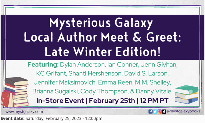→ Mysterious Galaxy Author Meet and Greet – February 25, 2023 at 12pm