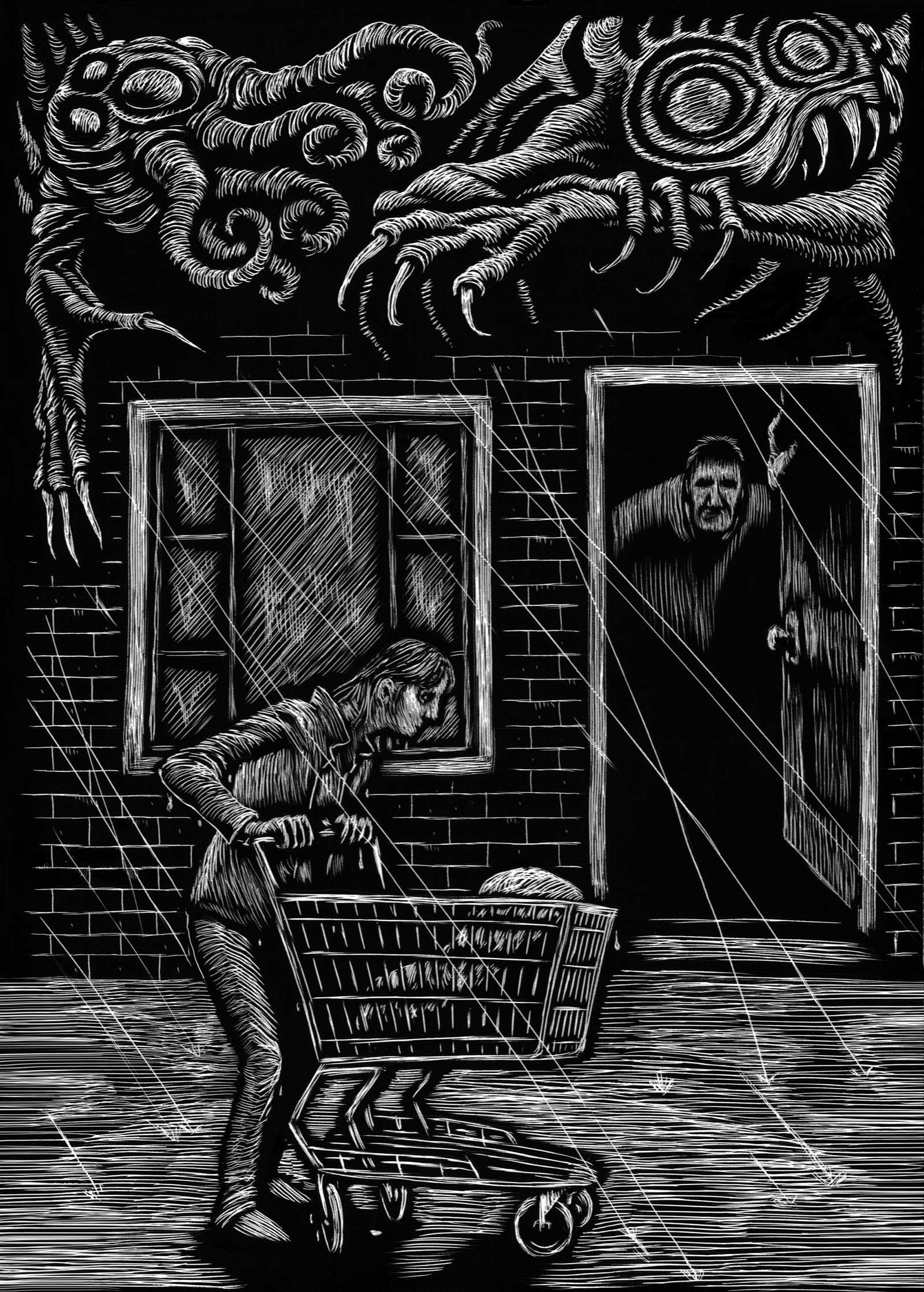 This story and illustration first appeared in the Lovecraft eZine issue #34 and was subsequently reprinted in the Stoker-nominated anthology FRIGHT MARE – Women Write Horror; Stitched Smile Publication’s Hydrophobia; and the inaugural issue of Horror Bites Magazine.